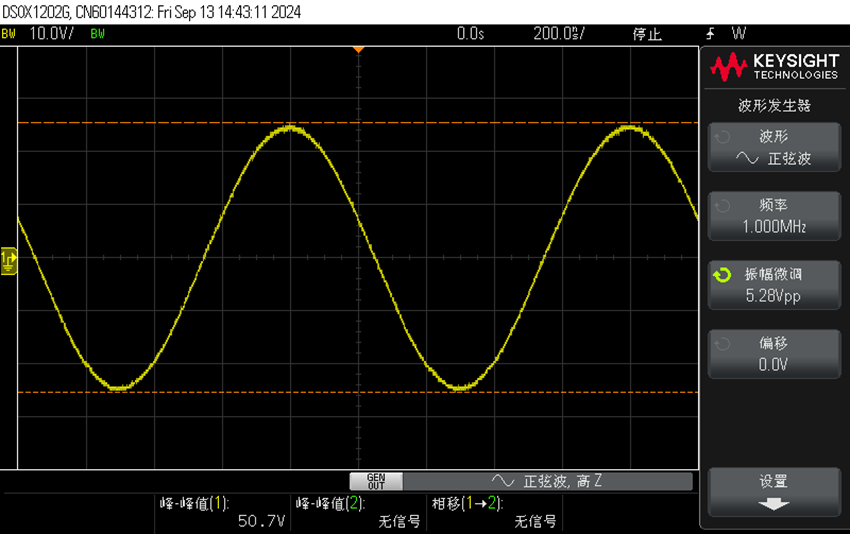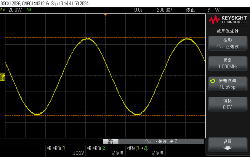 3)1MHz100Vp-p正弦波驱动50Ω负载