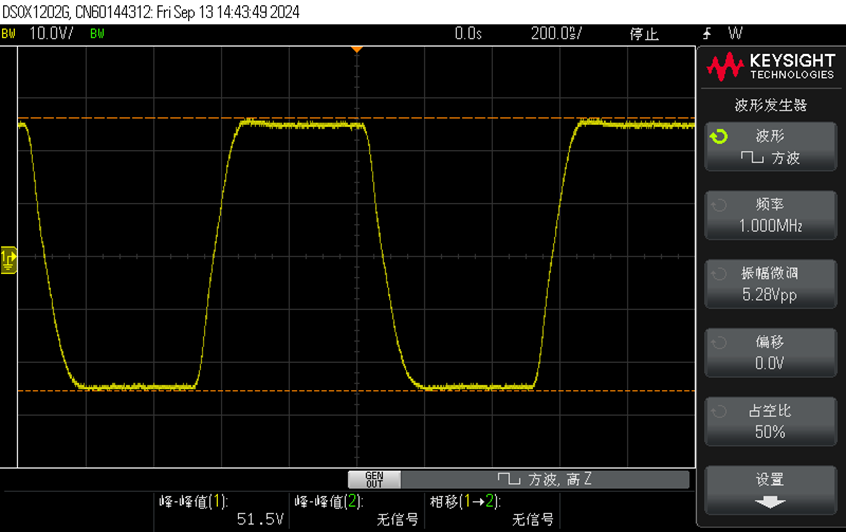 2)1MHz50Vp-p方波驱动50Ω负载